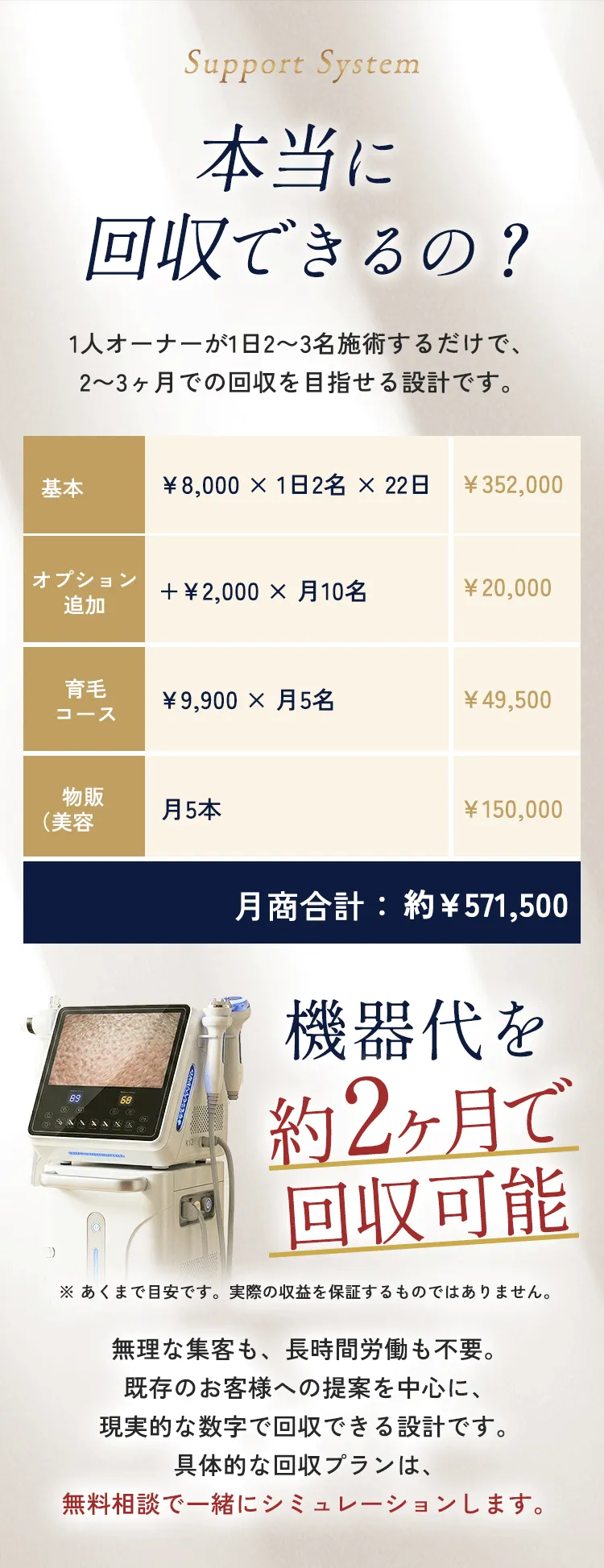 最適な導入プランと具体的な回収シミュレーションを